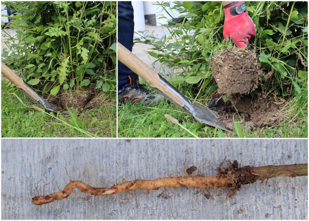 Der Einsatz eines Spatens ist nicht zu empfehlen. Die kleinen Distelwurzeln werden zu einfach durchtrennt und verbleiben somit im Erdreich, was zu einer erneuten Ausbreitung führt.